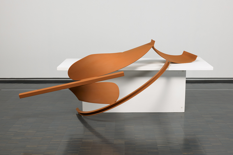 デイビッド・スミスは鉄を使ってたくさんの作品を作りました。表面を引っかいたり、塗装をしたりしましたが、この作品は錆びに塗膜の役割をさせています。鉄は人間の血液の中にある鉄分と呼応するのか、特別な感情を呼び起こします。
