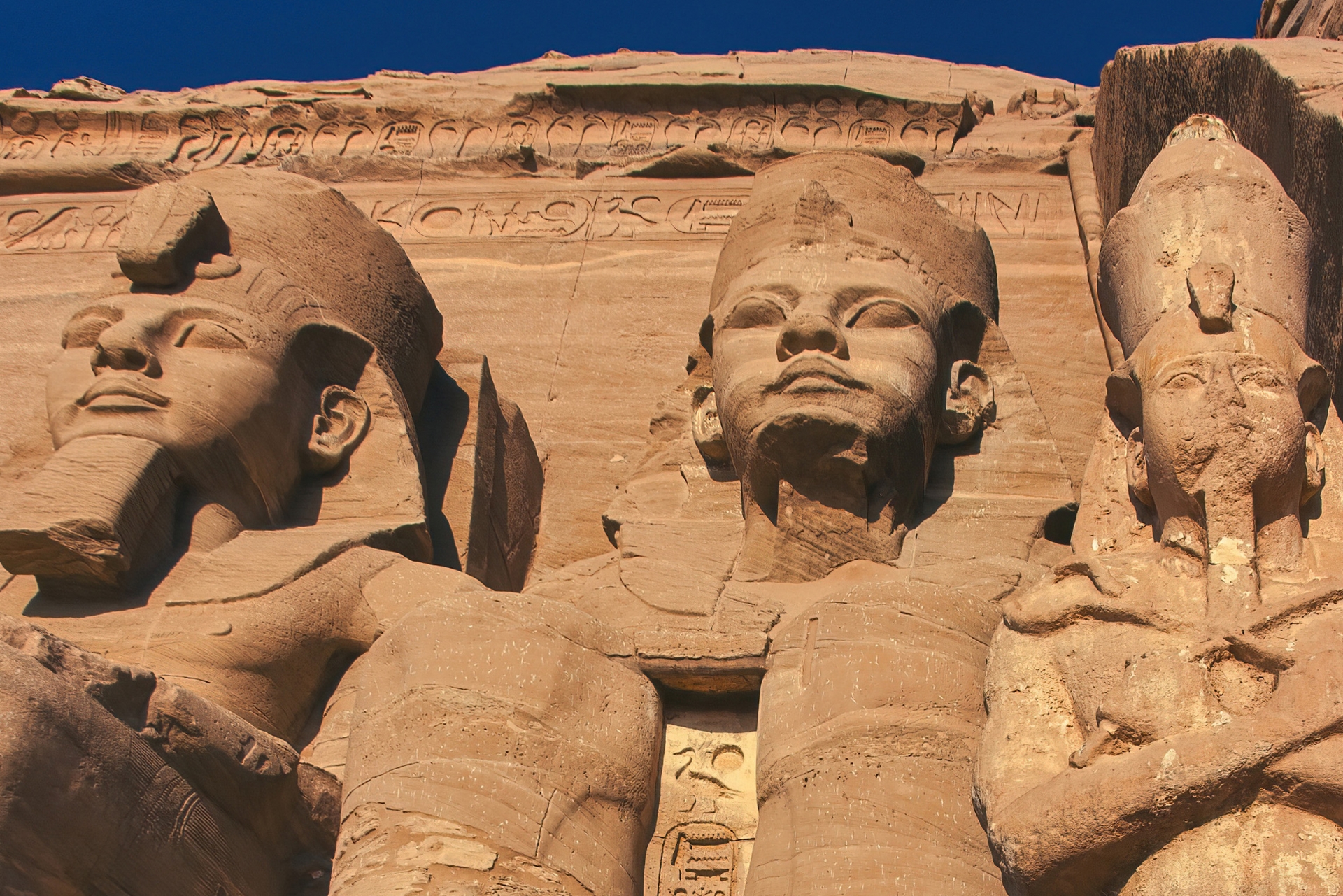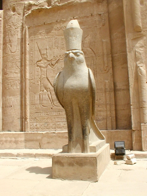 古代エジプトの神殿の前にたたずむ御影石で出来たホルス神の像などは、羽の一枚一枚を彫りこむようなことをしていません。