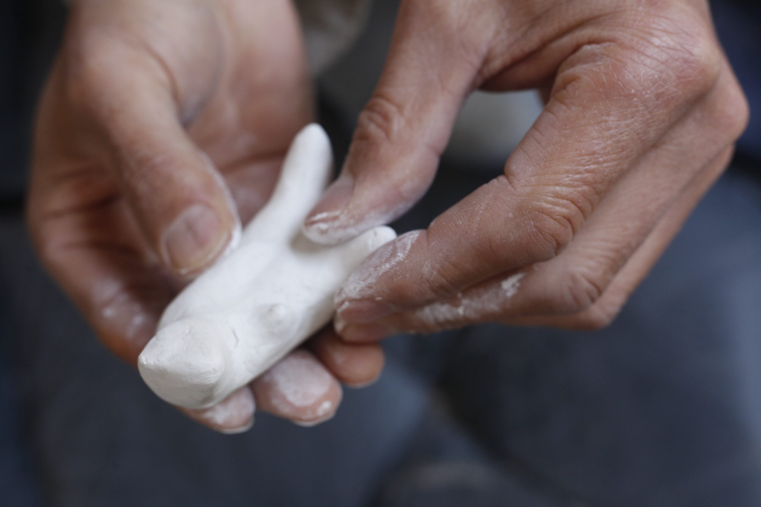 手に収まるほどの量の粘土を、手遊びをするようにして何か形を作ってみてください。