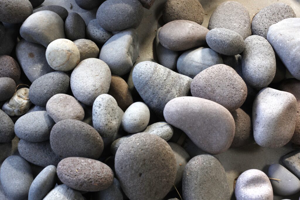 川の下流に行けば丸く磨かれた石がたくさん落ちています。